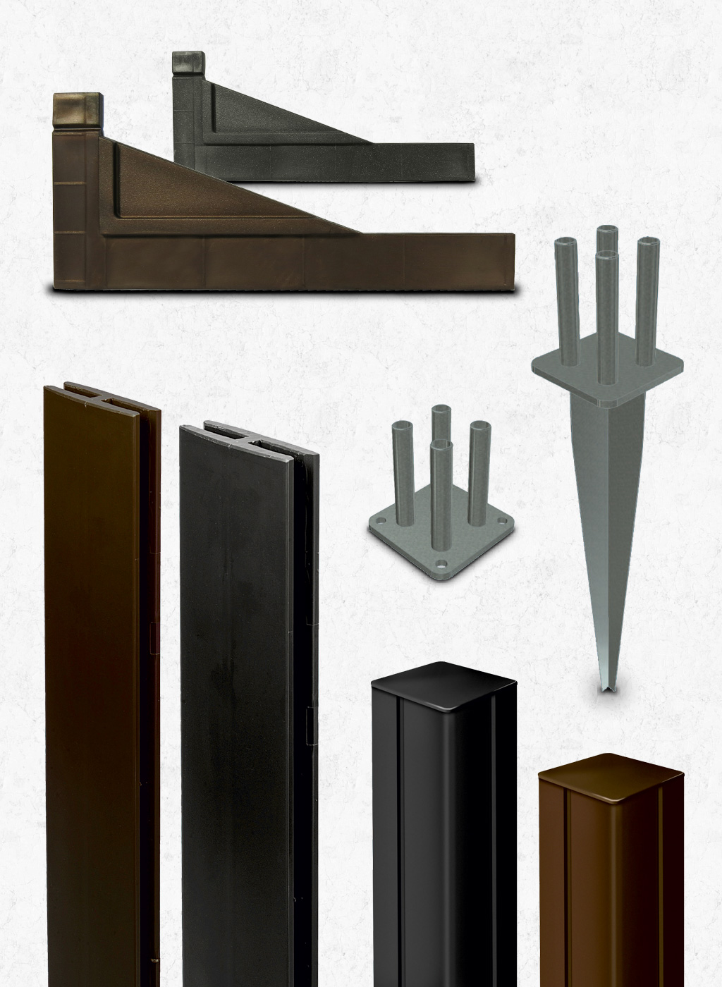 The Mosaic decorative panel cannot stand on its own: it requires solid posts to be fixed into the ground. The Alupost posts have been specially designed for mounting the Mosaic panel. These aluminum posts are available in four different colors: anthracite, rust, green, and white.