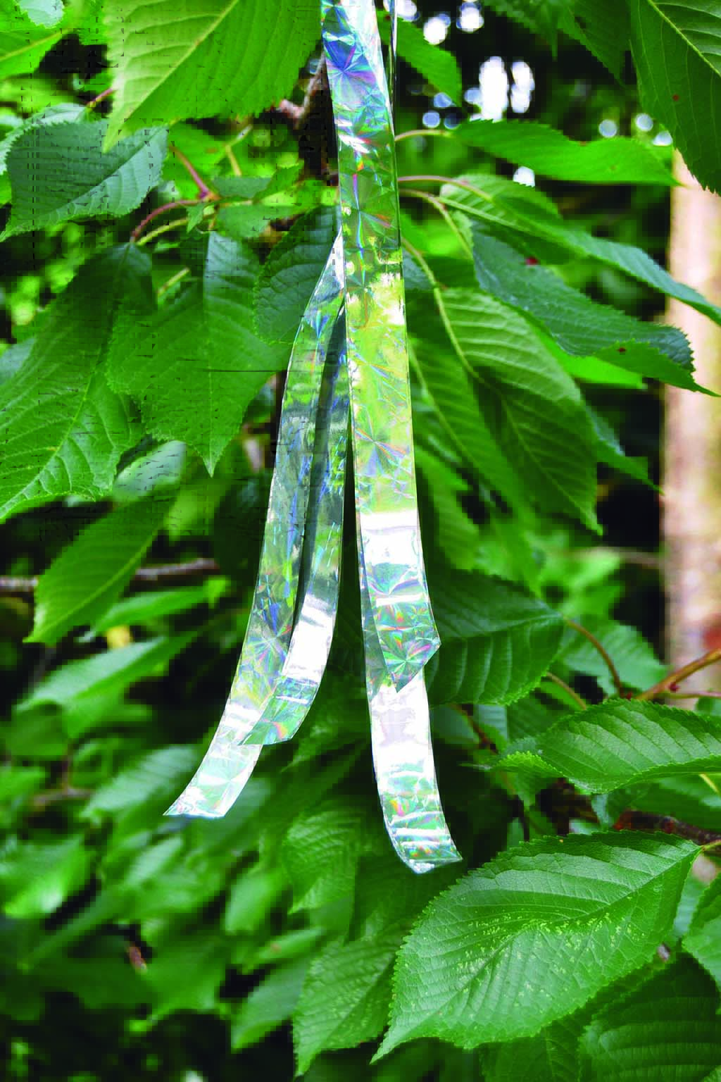 Bird-scarer Reflective polyester ribbon uses holographic reflections to scare birds.