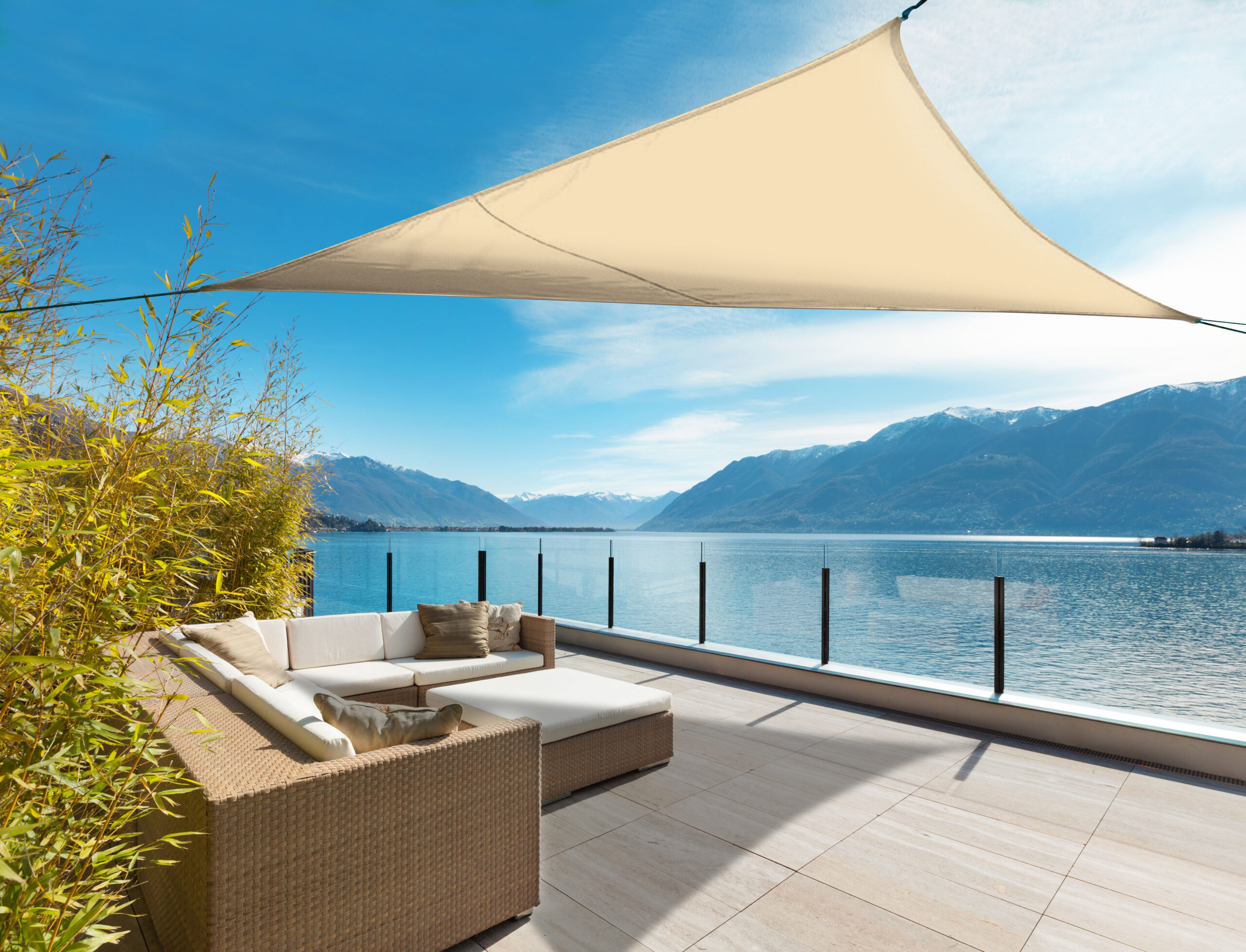 ელასტიური და საჩრდილობელი წყალგაუმტარი ბადე სამკუთხედი 3.4X3.4X3.4 – კრემისფერი #8413246019354
