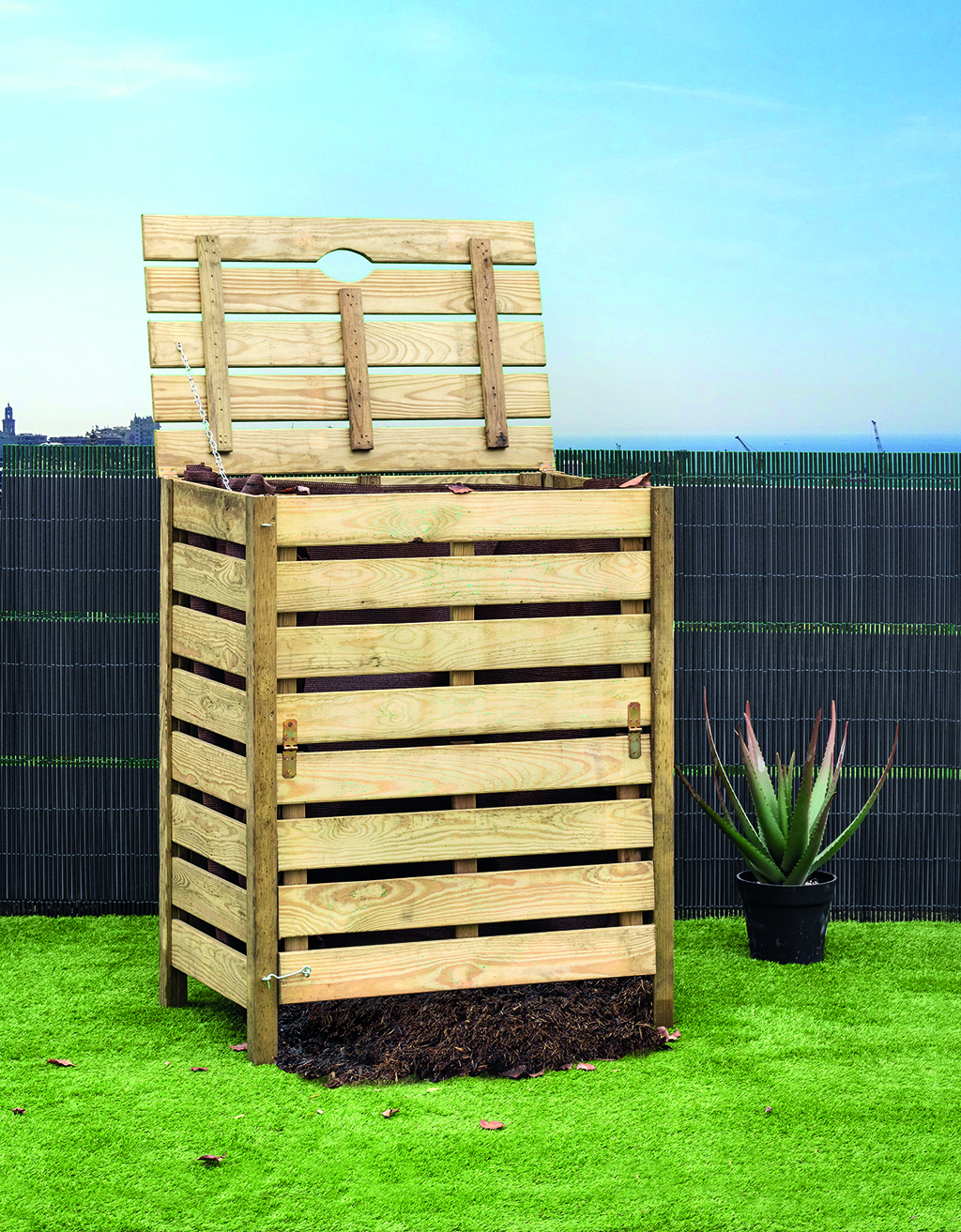 Wood compost. Ideal to make organic compost. The furniture has an extended base to make easy the process to pick the organic compost.