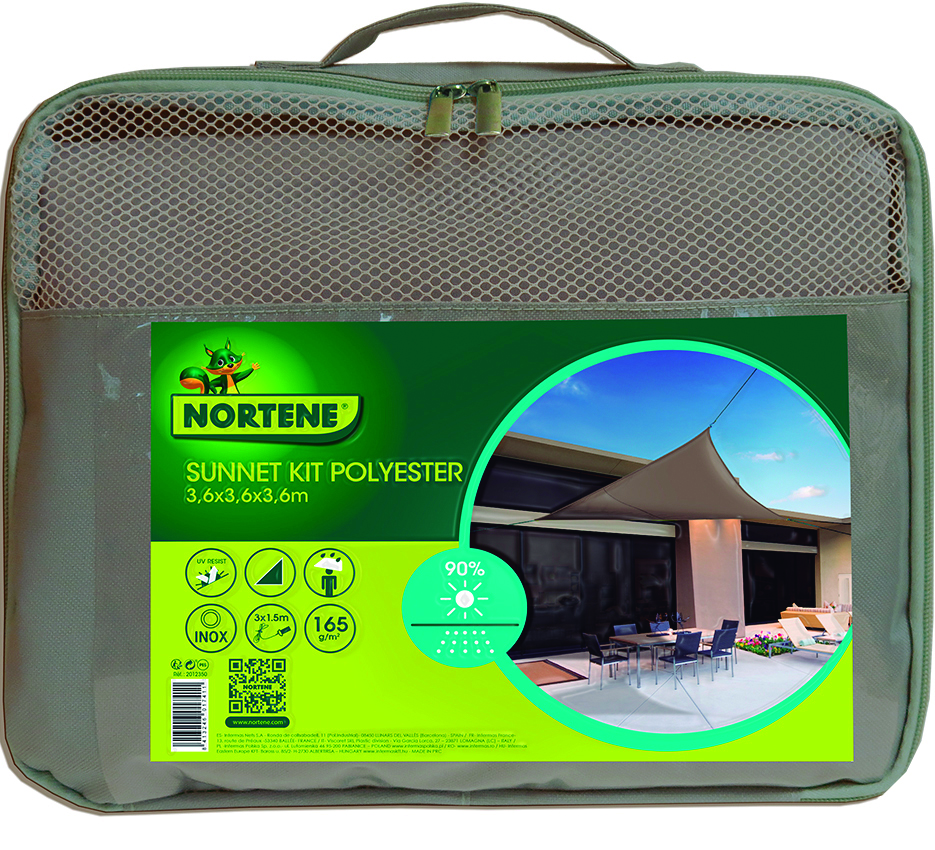 Affords protection from sun and rain. Strengthened sides and rust-proof rings at each corner. Quick to install, it is advisable to keep it taut and slightly tilted in order to prevent a build-up of water and leaves on the top.